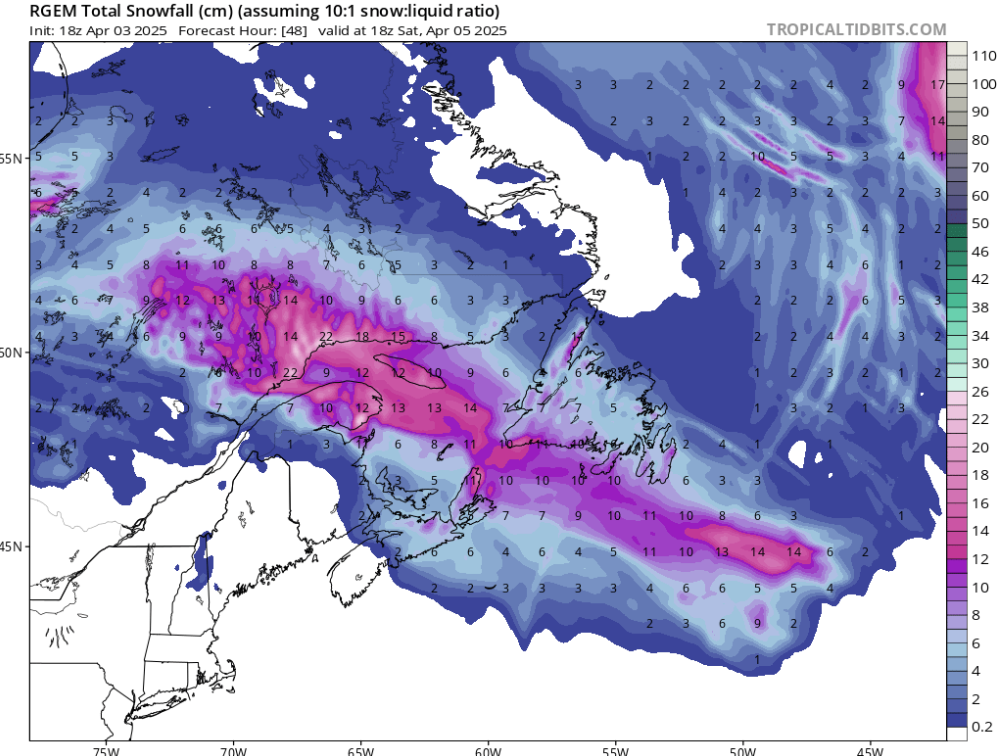 Great Northern Peninsula & Northeast Coast: 2-5 cm